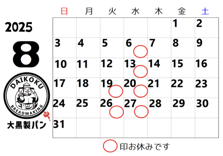 8月のお休みです